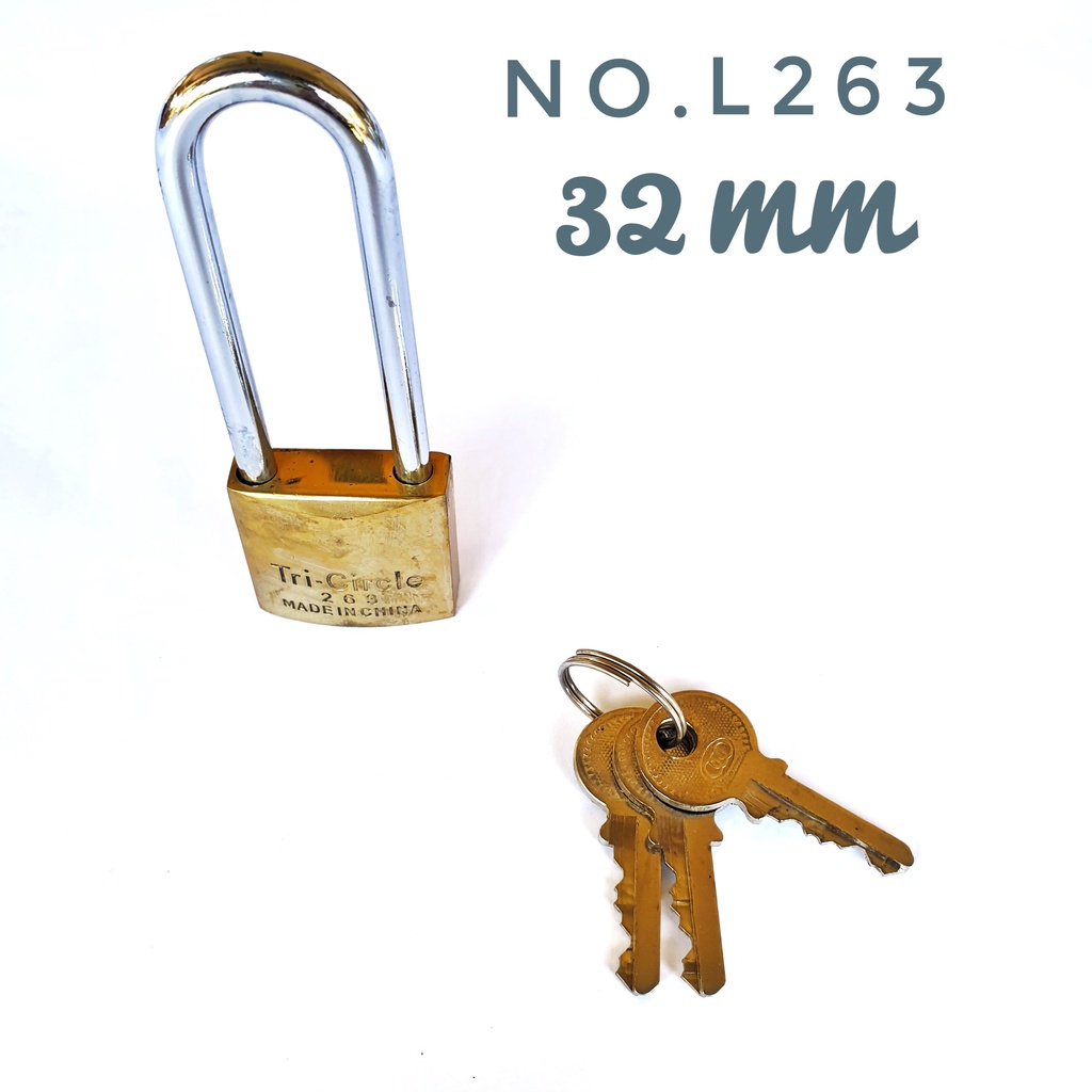 Tri-Circle Long Shackle Brass Pad Lock 25mm 32mm 38mm 50mm Tri Circle Padlock Original Heavy Duty Mangga Tembaga
