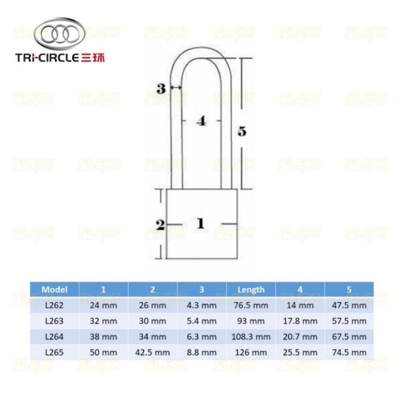 Tri-Circle Long Shackle Brass Padlock Heavy Duty Safety Security Pad Lock 25mm | 32mm | 38mm - FLEXI