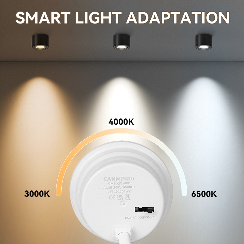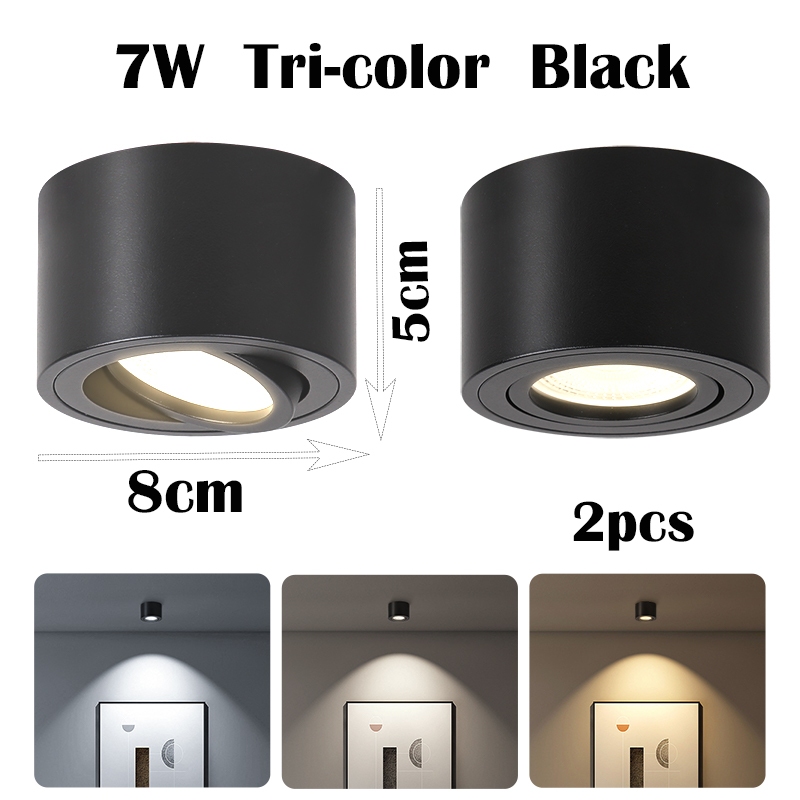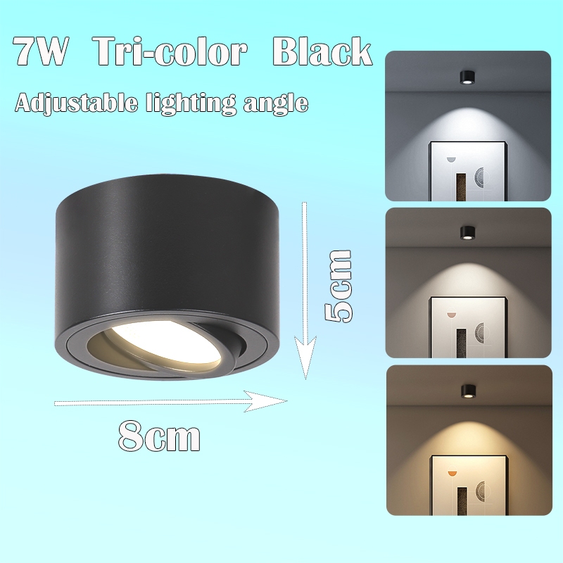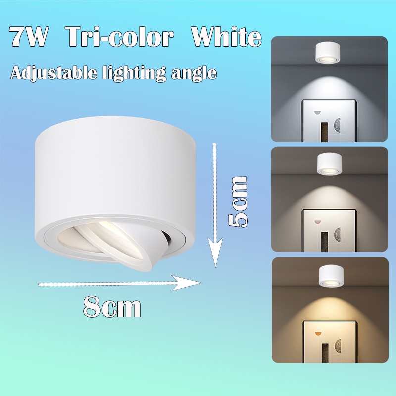 Tri-color Downlight Adjustable Angle LED Spotlight 7W 220V Surface Mounted Ceiling Lamp Living Room Bedroom Home Deco
