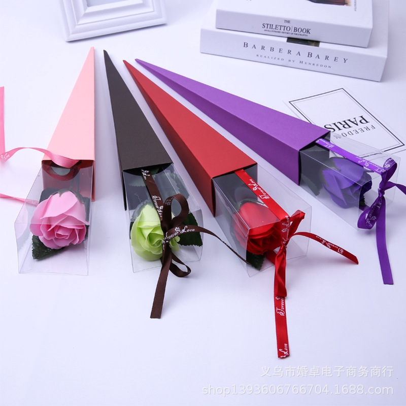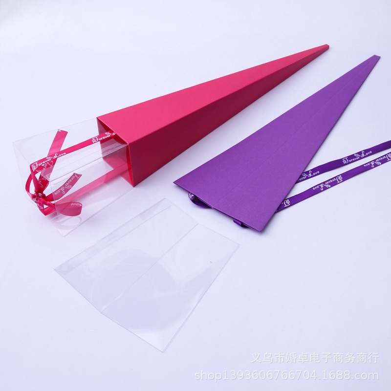 Triangular Cone Shaped Rose Flower Box Single Bouquet Packing Gifts Wrapping Paper Bags for Valentine's Day Mother's Day