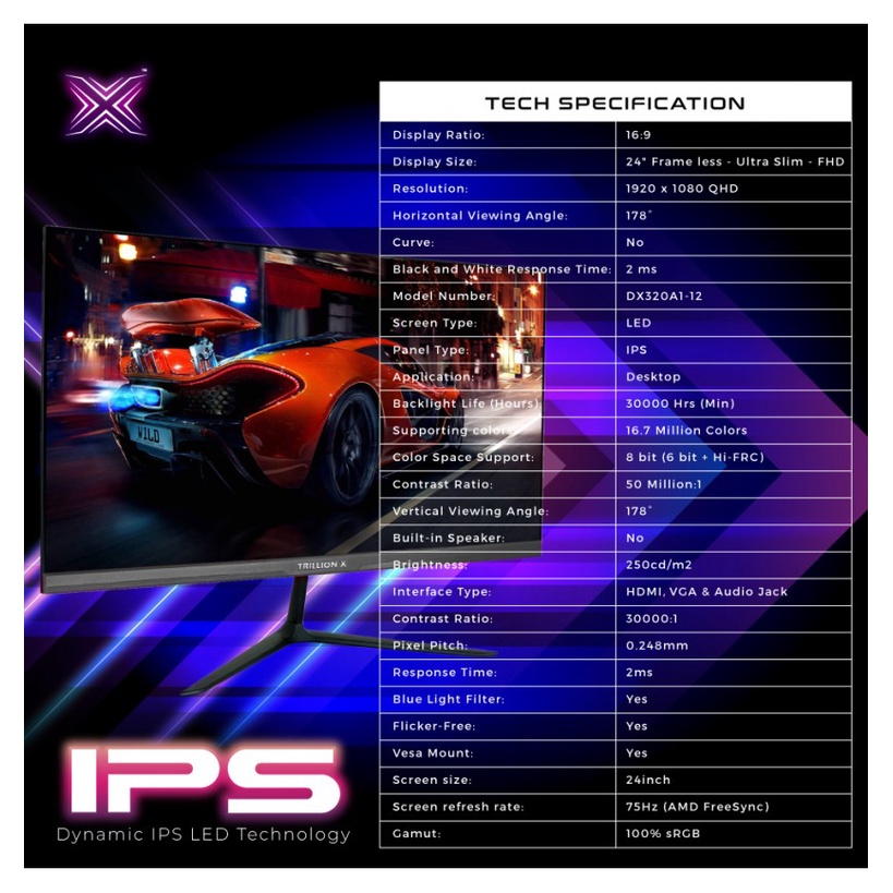 TrillionX 20" Inch IPS Screen Monitor 60Hz Adaptive AMD FreeSync Built-in Speaker FHD VGA/HDMI Support PS4/XBOX
