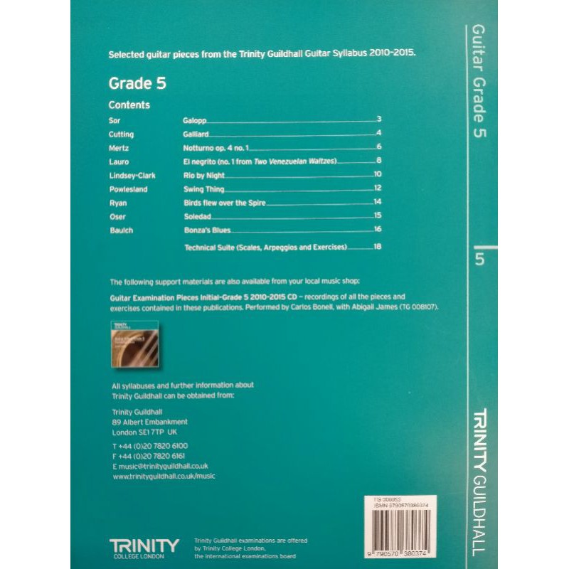 Trinity Classical Guitar Exam Pieces & Exercises Grade 5 2010-2015 Book only