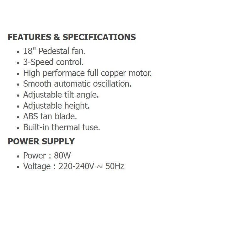 Trio 18" / 45cm Stand Fan Pedestal Fan TPF-5182B