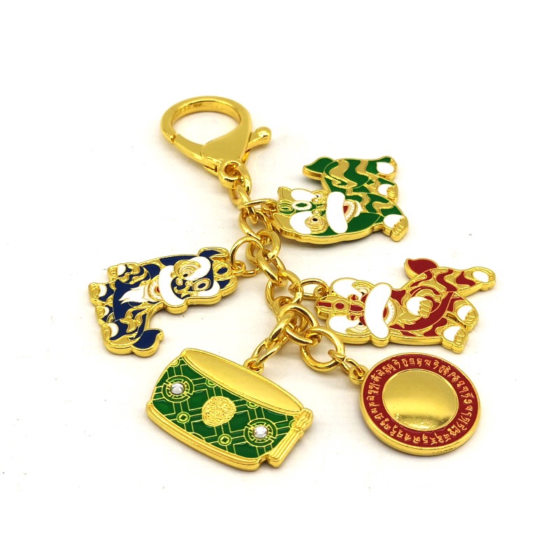 Trio Of Lions Feng Shui Keychain - Feng Shui Product Shop - Lion Dance Tzi Chi Kau - Big Auspicious Star