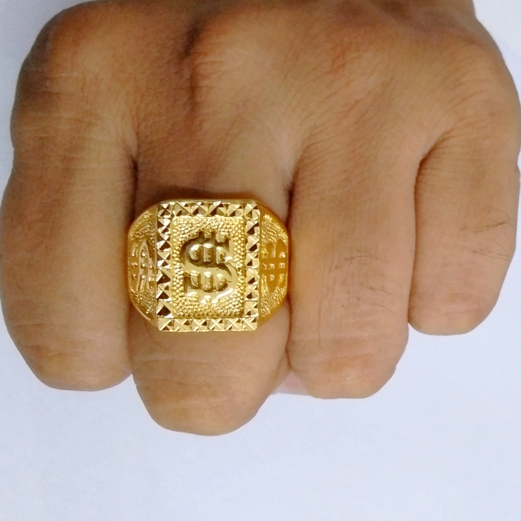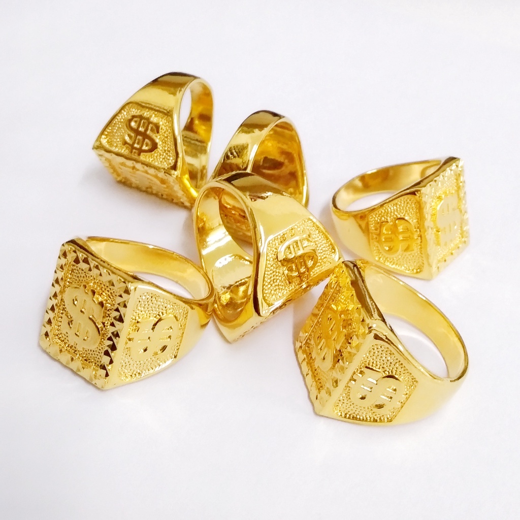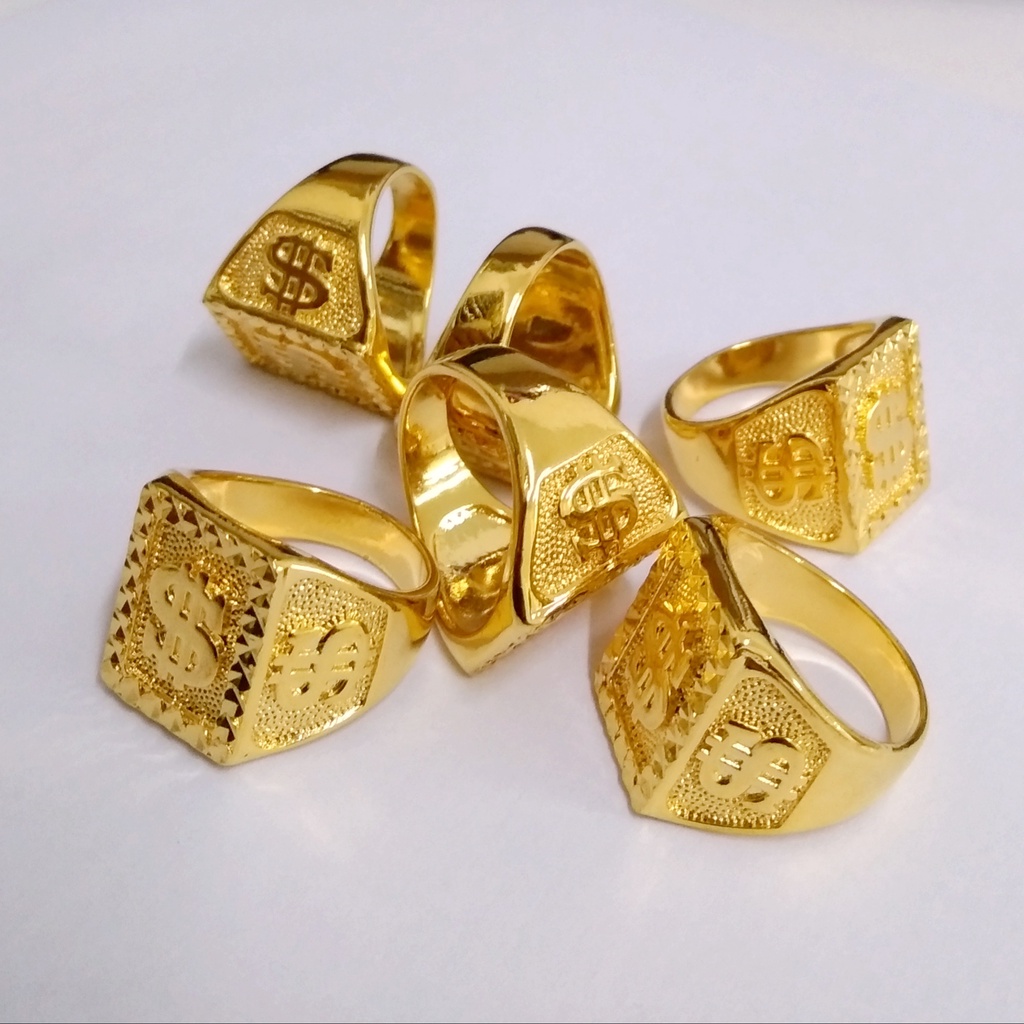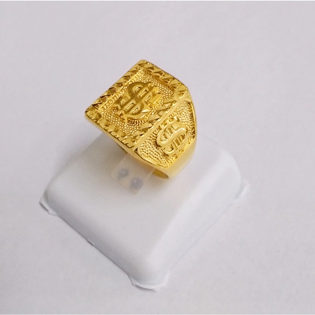 Triple Dollar Sign Men Fashion 24K Gold Plated Box Biscuit Square Ring