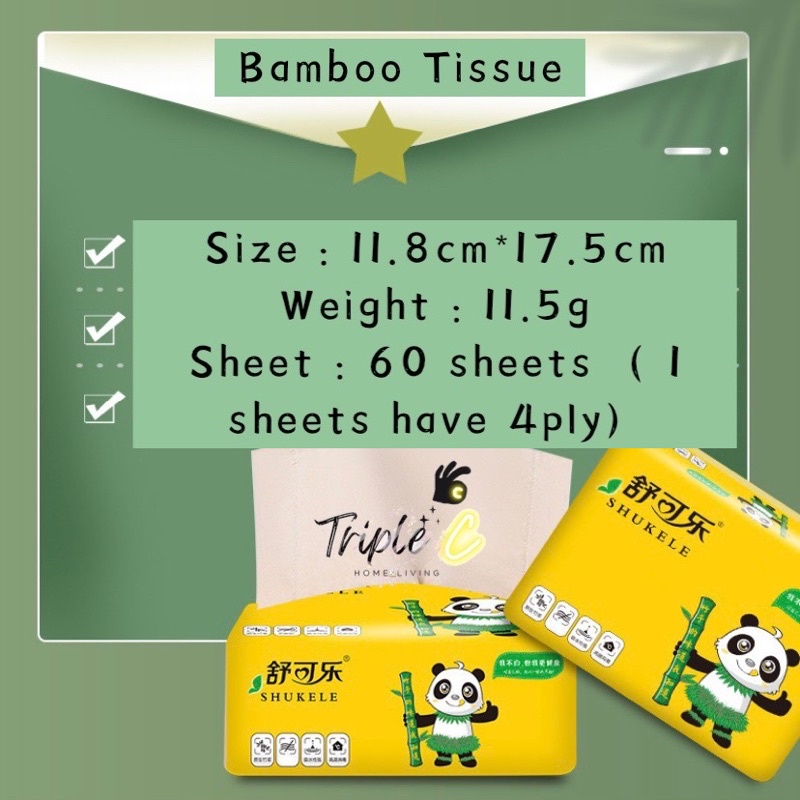 TripleGC. Panda Bamboo Tissue Soft Facial 4 ply Tissue Paper toilet paper, facial tissue, and baby toilet paper