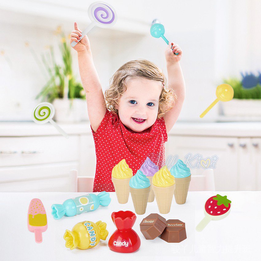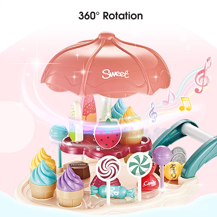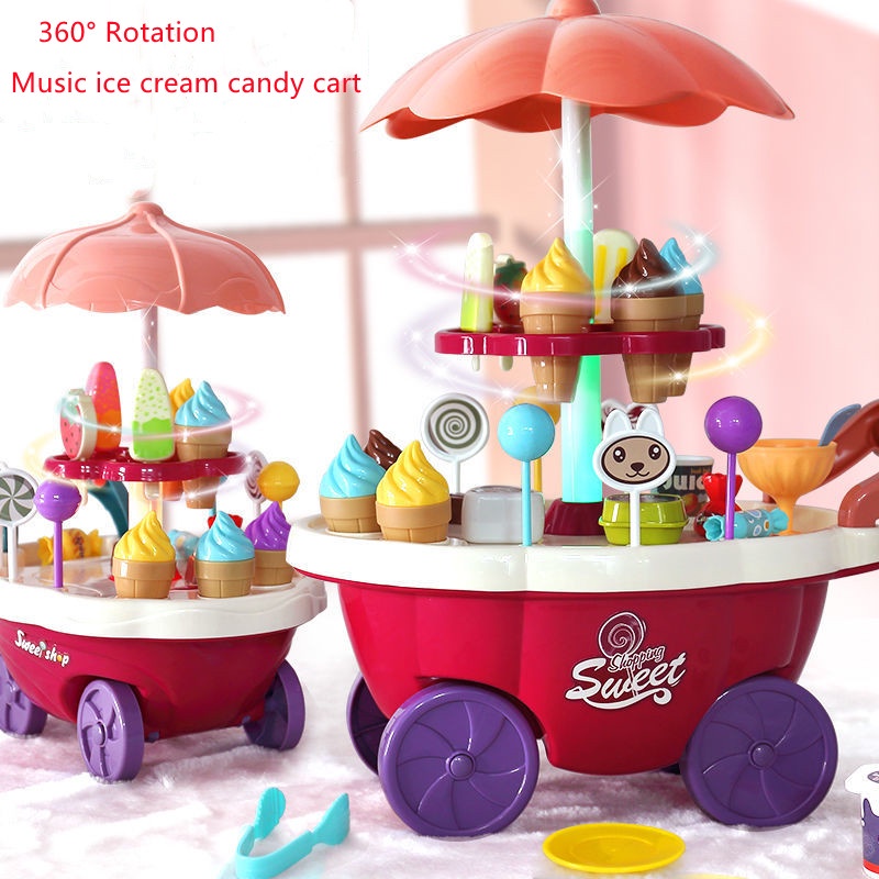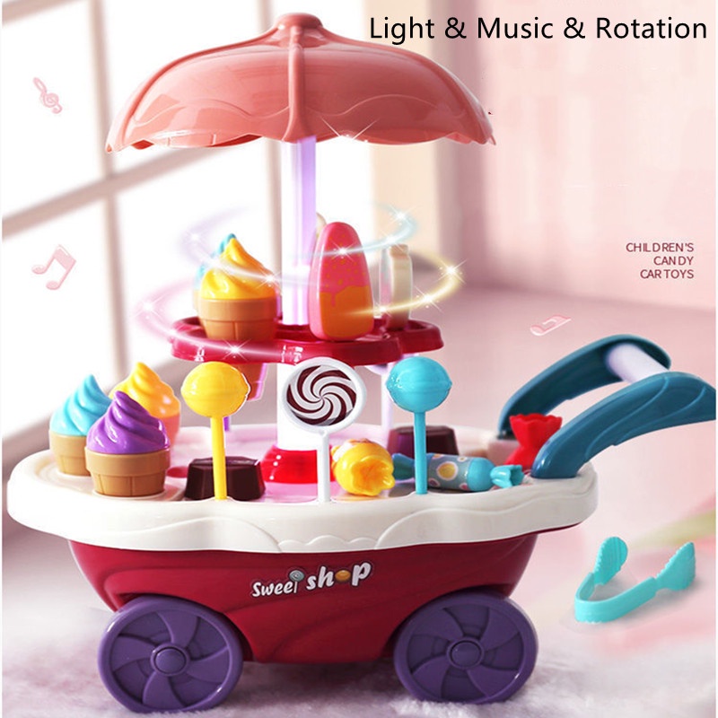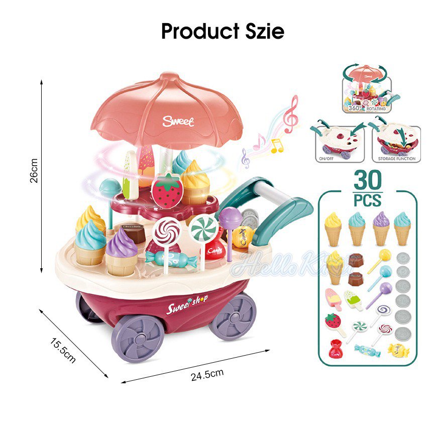 Troli Aiskrim Mainan Budak Perempuan Lelaki Ice Cream Candy Cart Kid Pretend Play Toy Set with Sound and Light