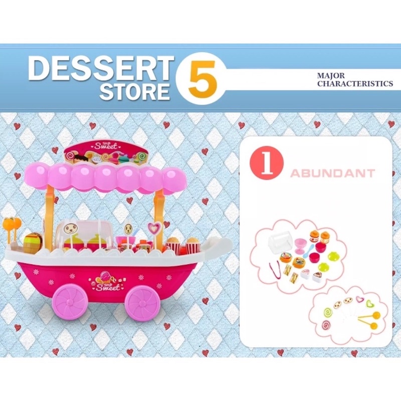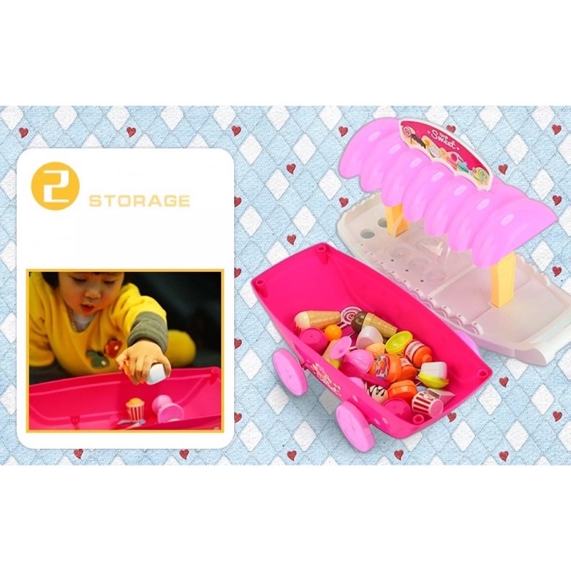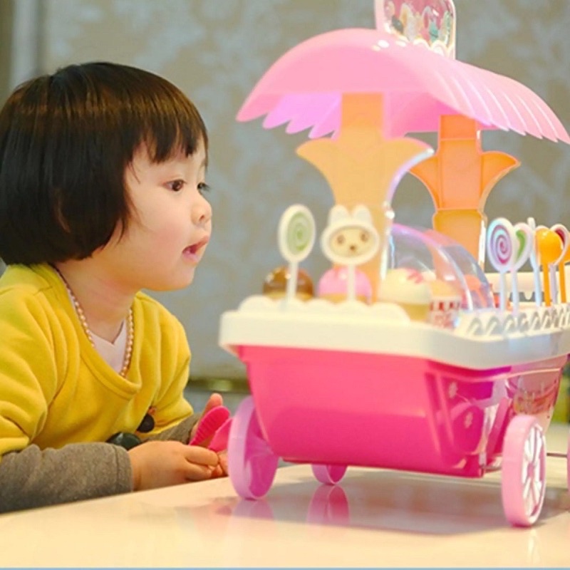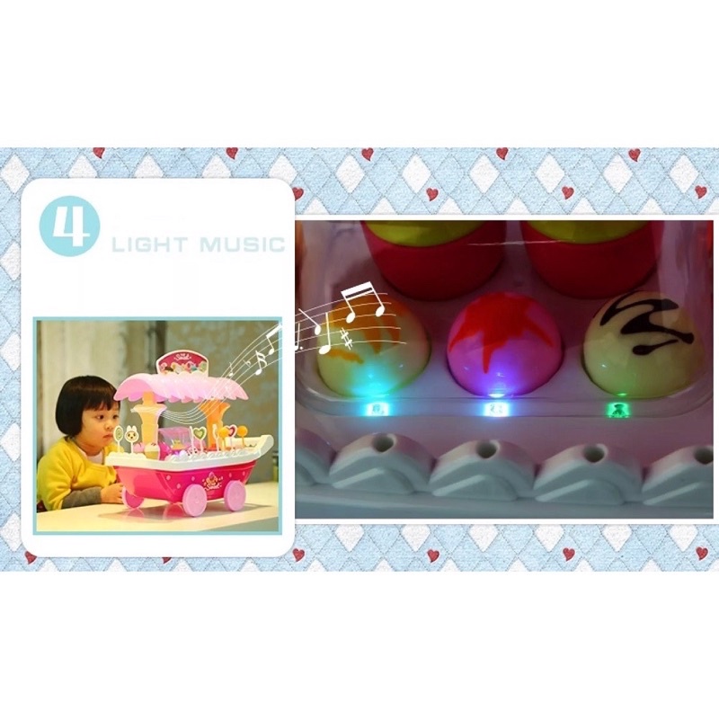 Troli Aiskrim Mainan Budak Perempuan Lelaki Ice Cream Candy Cart Kid Pretend Play Toy Set with Sound and Light