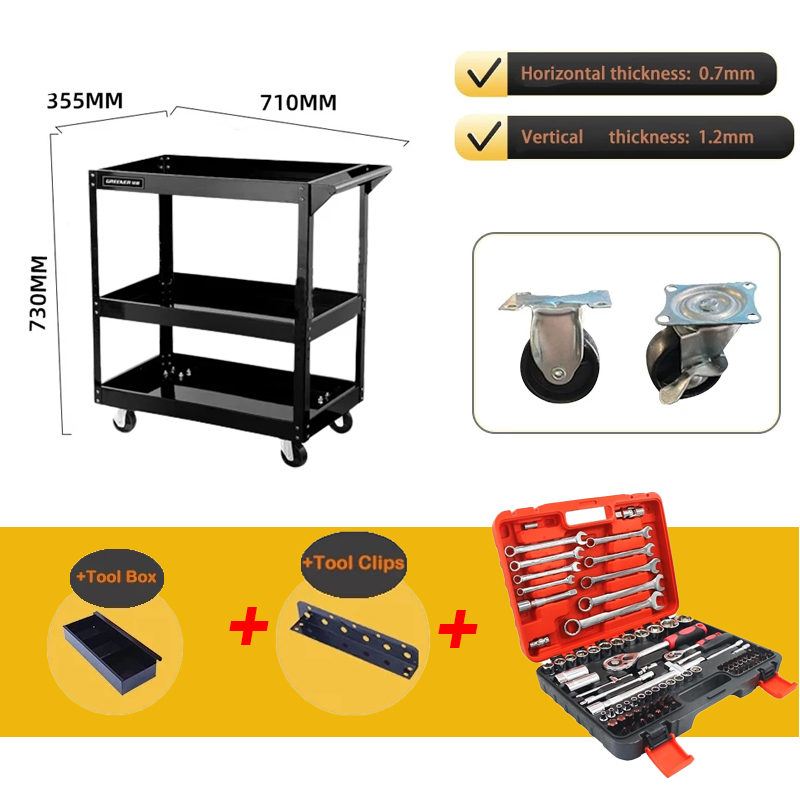 Trolley Cart Heavy Duty Metal Steel 3 Layers Service Barang Garaj Bengkel Shelf Storage Tool Cart 推车