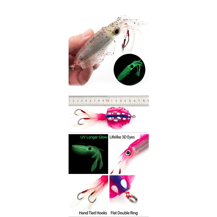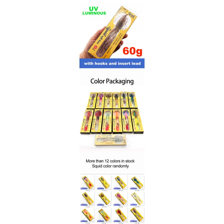 Trolling Lure Soft Squid Lure 60g Luminous UV Squid Jig for Sea Fishing Boat Fishing Wobbler Bait for Snapper Saltwater Lures