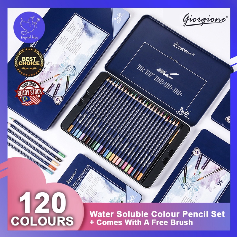 Tropical Blue Gio Watercolor Pencils 12/24/36/48/72/120 Pensel Warna Watersoluble Colour Pencil
