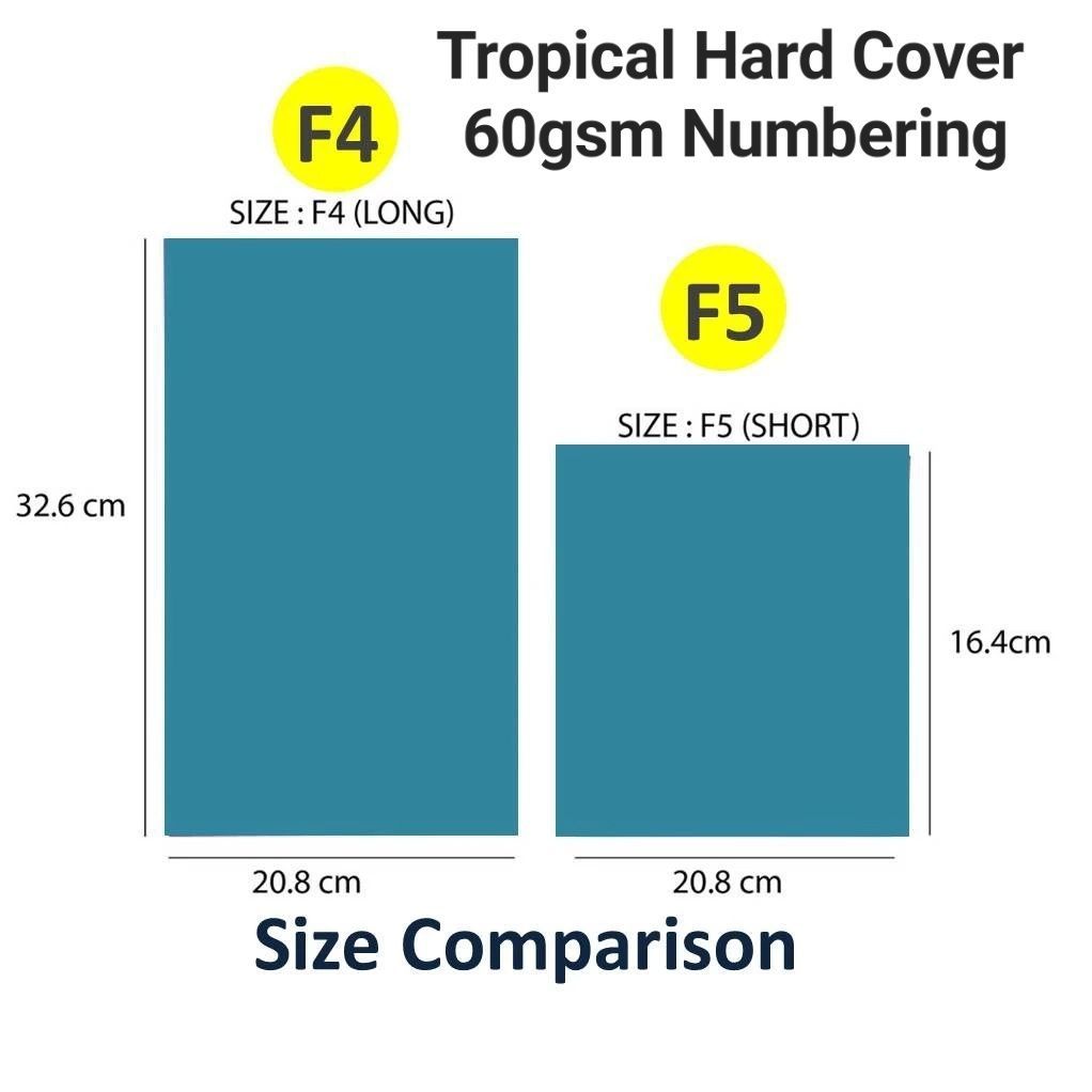Tropical Hardcover Book F5 Quarto or F4 Foolscap 60gsm numbering 120/200/300/400Page Buku Log