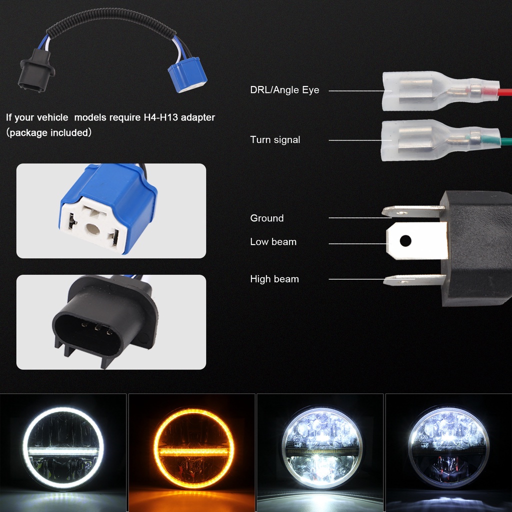 Truck Off Road 7" Inch 400W High Bright led headlight Round Car LED Headlight Turn Signal Amber White DRL with Halo SUV Headlamp