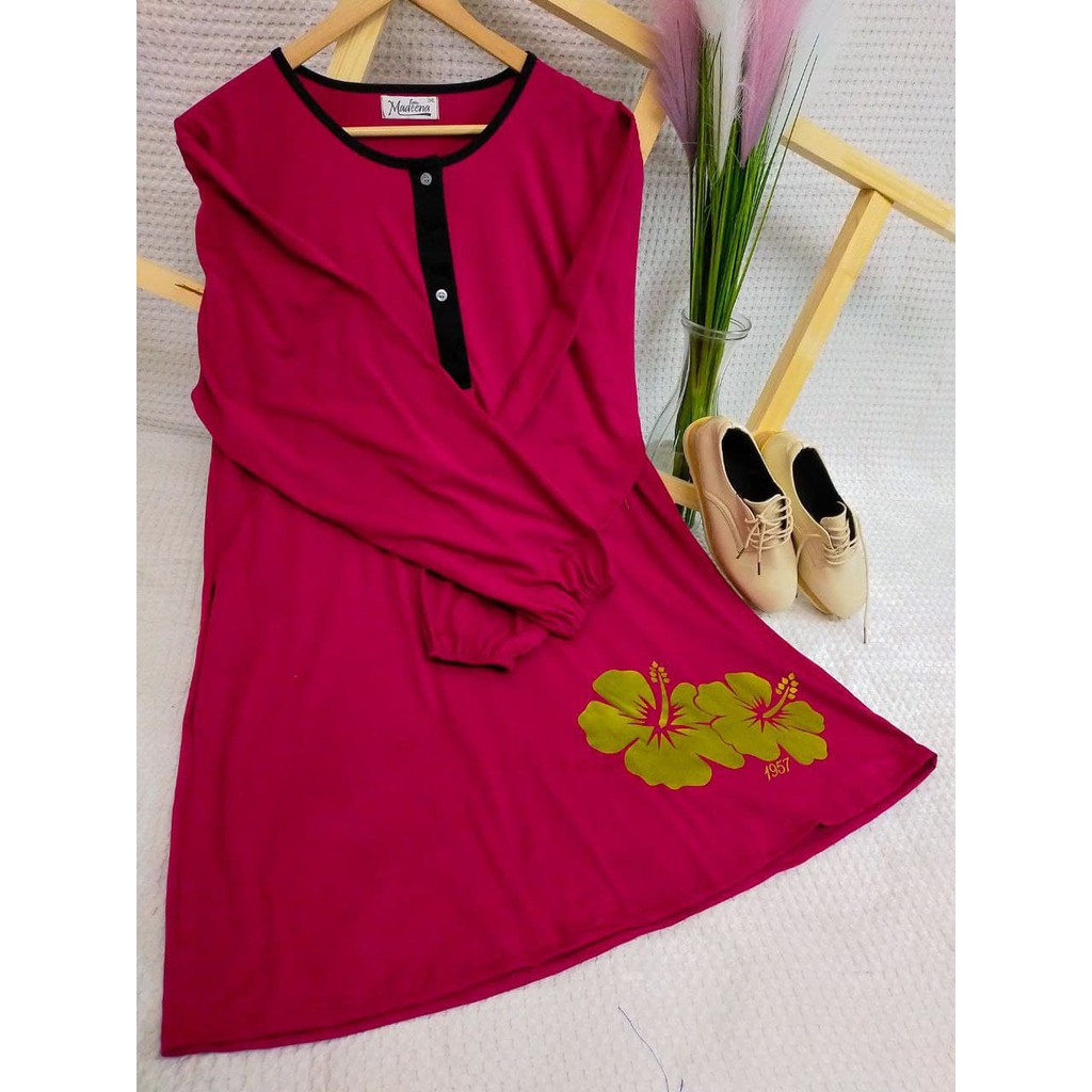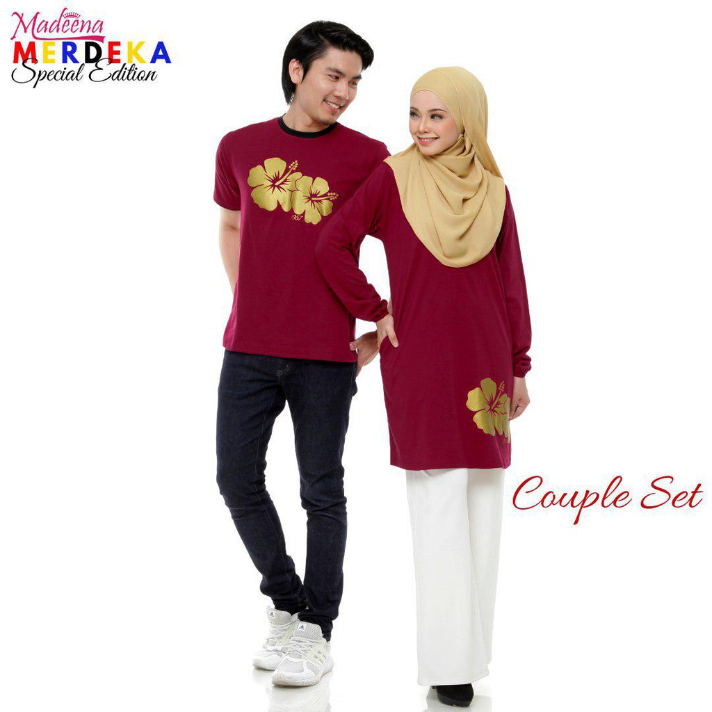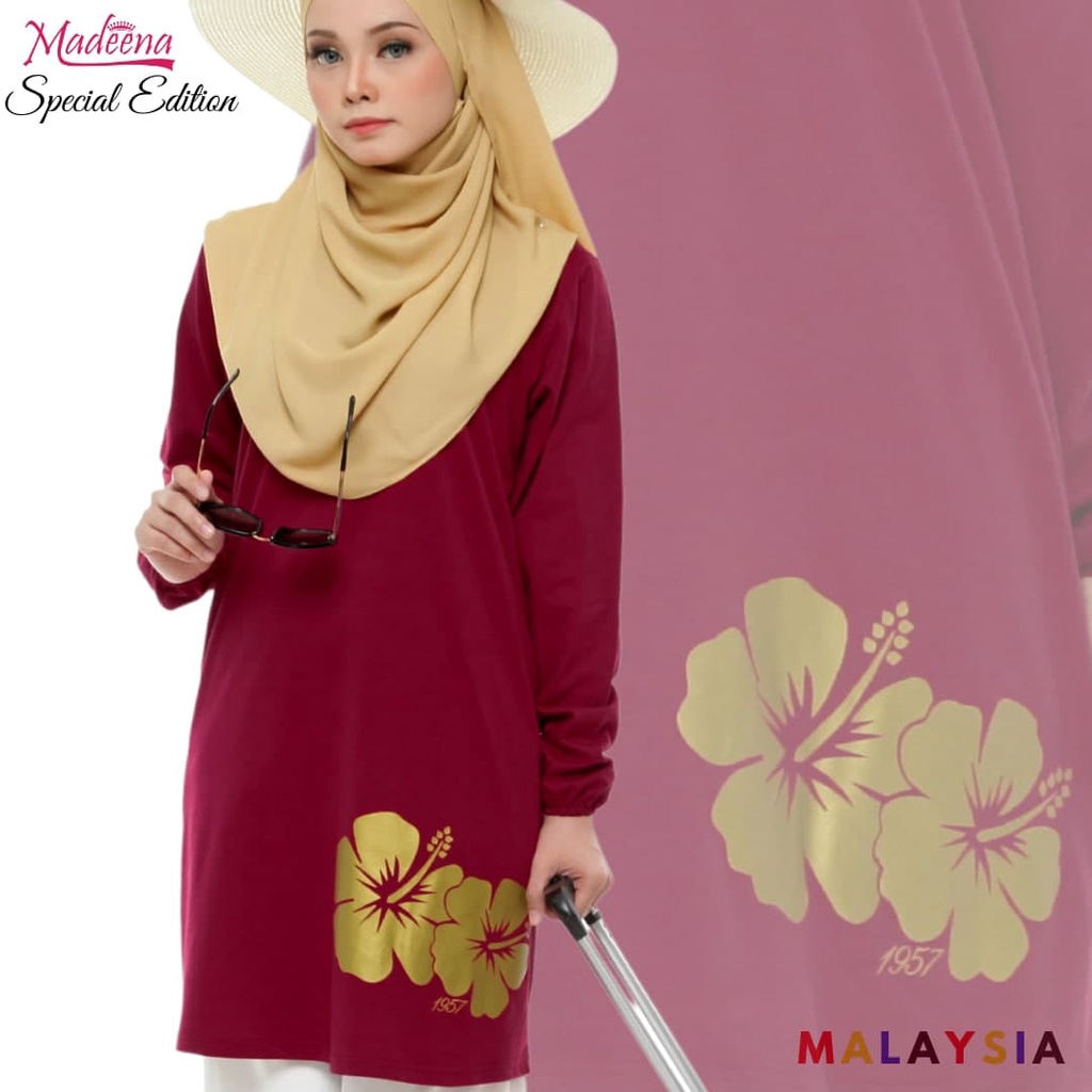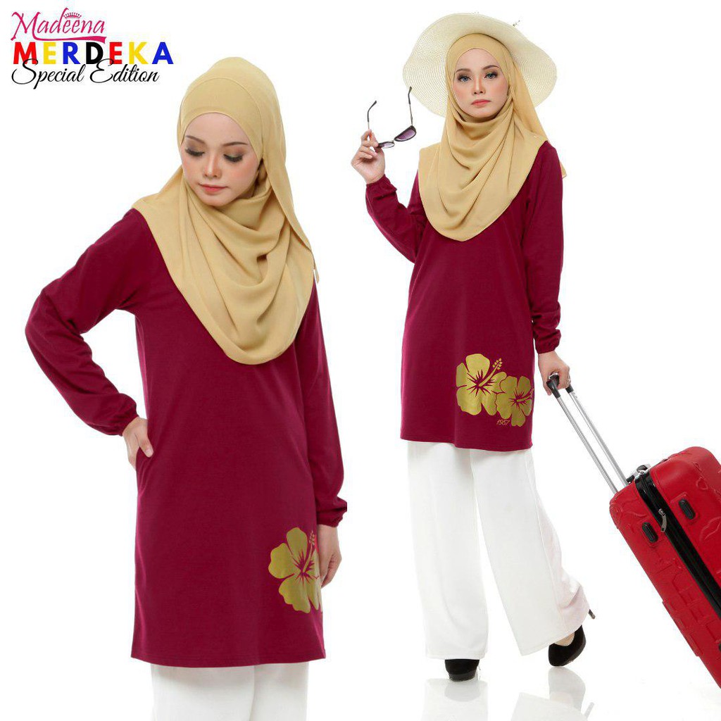 Tshirt Muslimah Madeena Merdeka Inspired - Crimson Red | Baju Muslimah labuh Merdeka Inspired Sopan Ironless