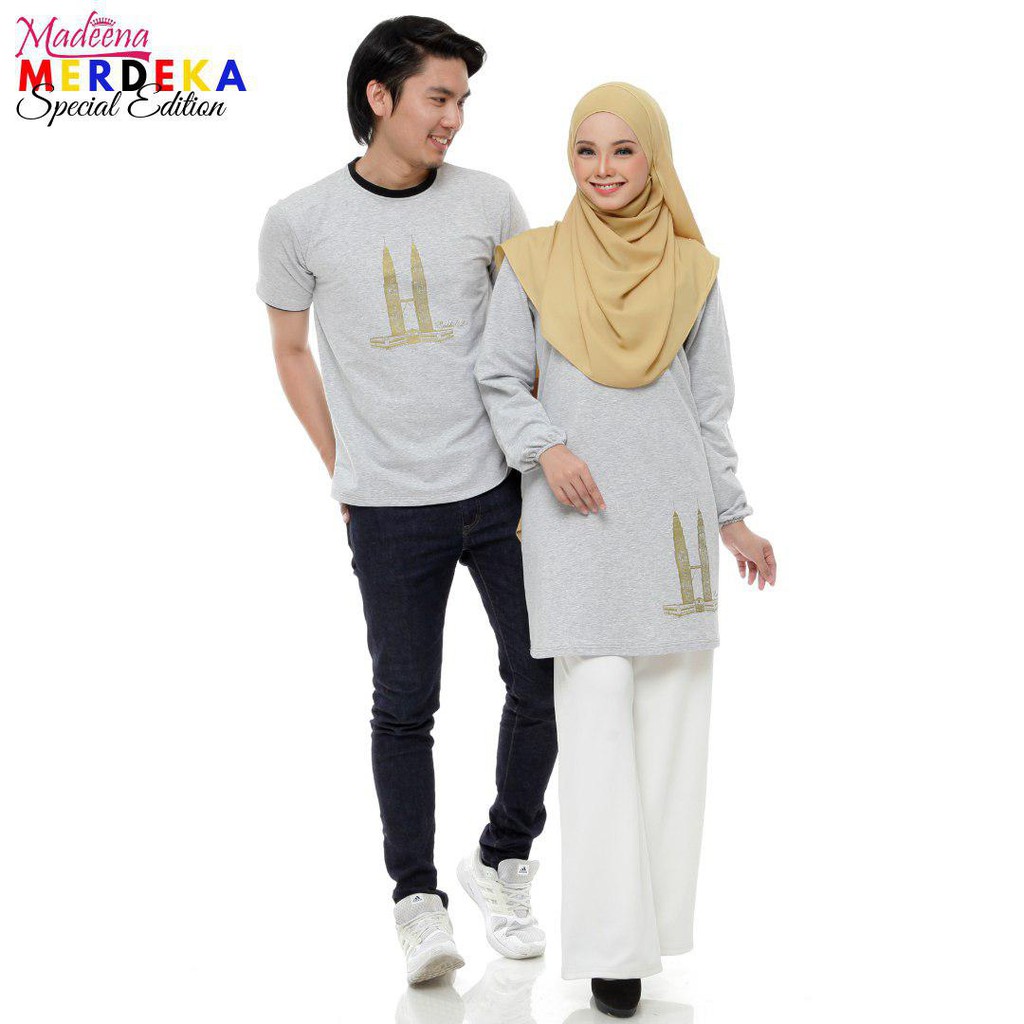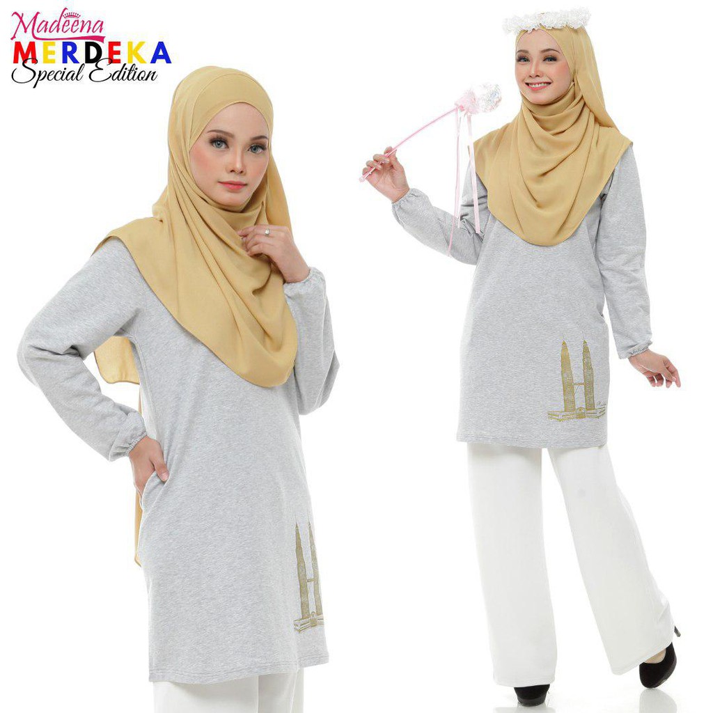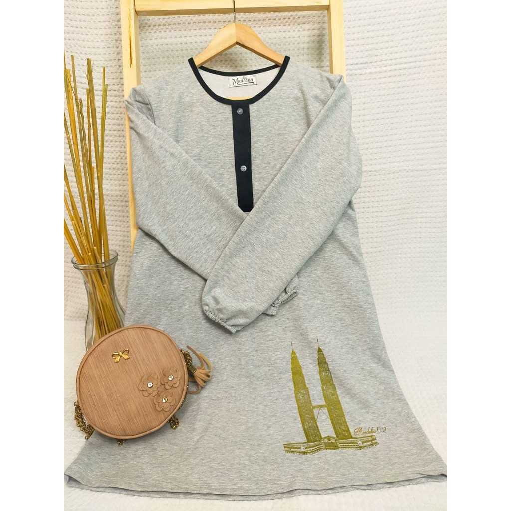 Tshirt Muslimah Madeena Merdeka Inspired - Melange Grey | Baju Muslimah labuh Merdeka Inspired Sopan Ironless