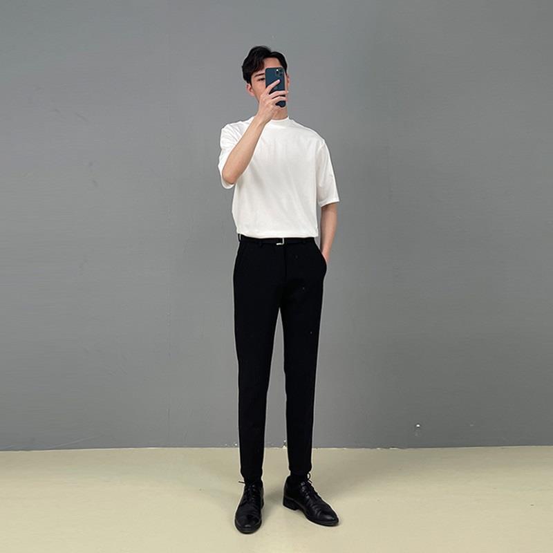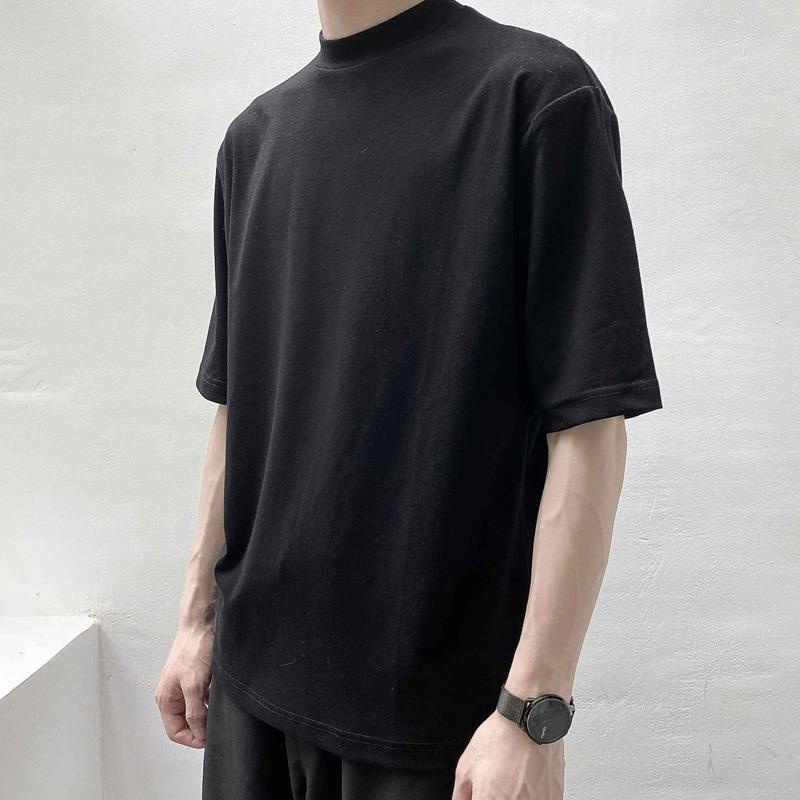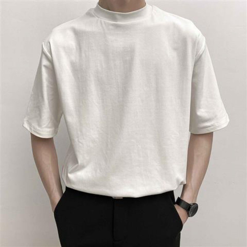 Tshirt T Shirts Men Solid Color Koreans Shirt High-neck Small High Collar Men's Tee Top