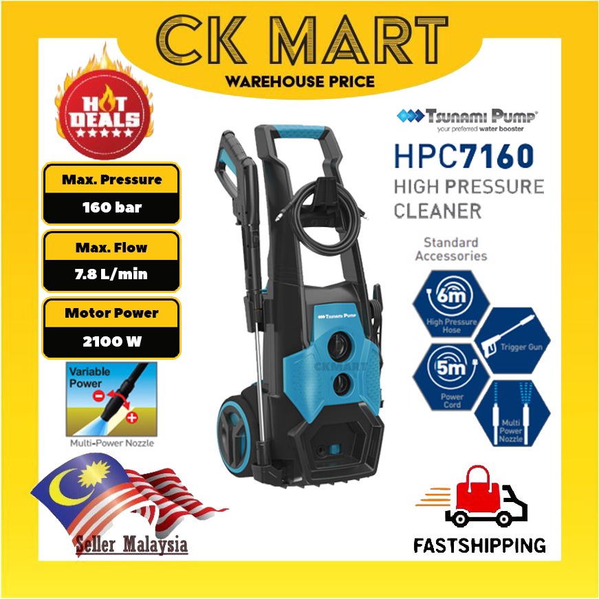 Tsunami Water Jet HPC7160 Water Jet High Pressure Water Jet Induction Motor Water Pressure Washer Mesin Cuci Kereta