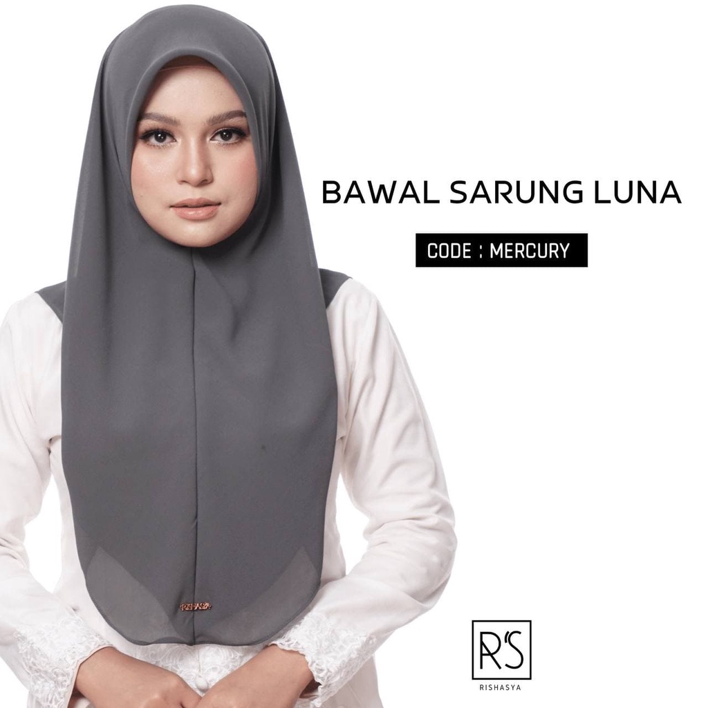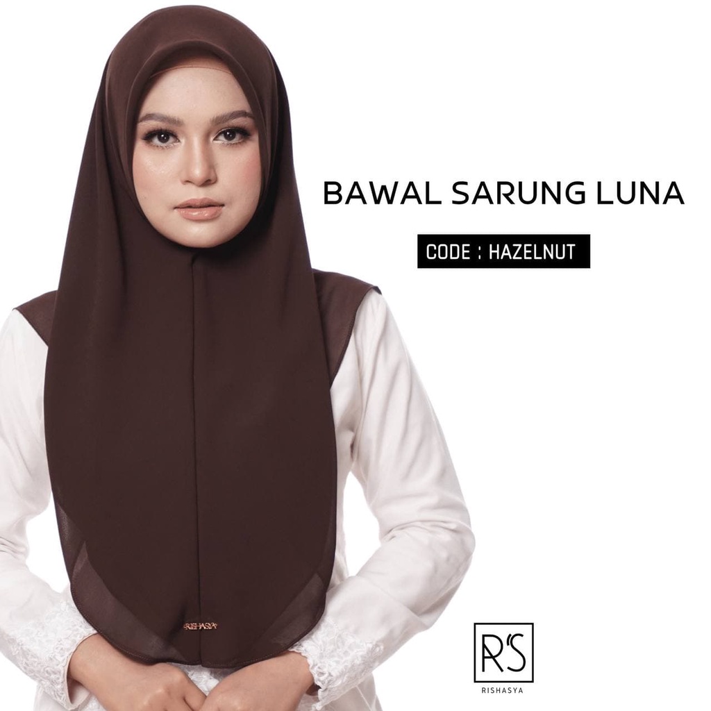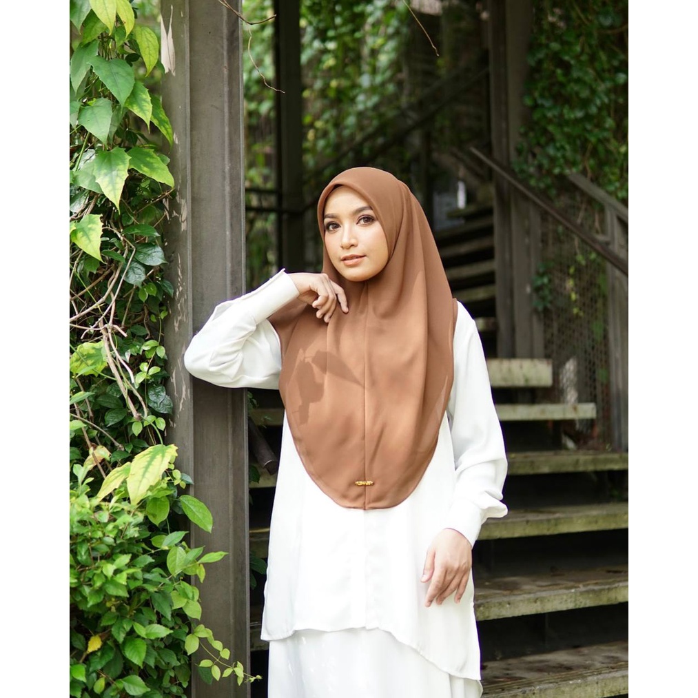 Tudung Bawal Sarung Luna | Bidang 45 | Chiffon Georgette | Instant | Mudah Bentuk