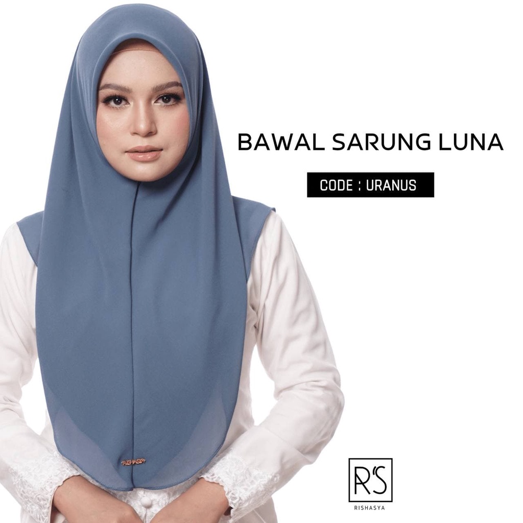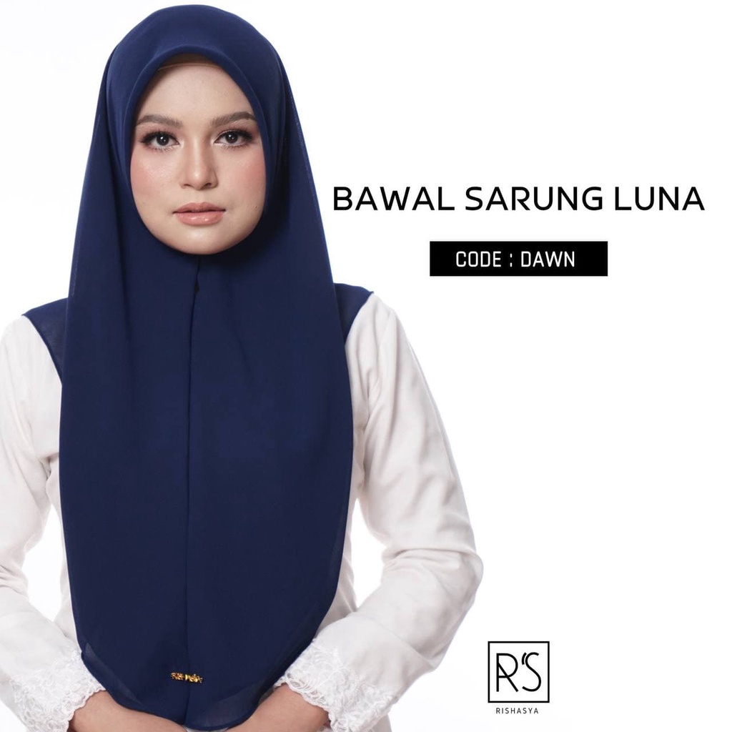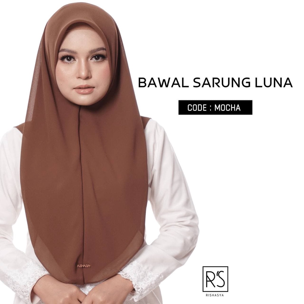 Tudung Bawal Sarung Luna | Bidang 45 | Chiffon Georgette | Instant | Mudah Bentuk