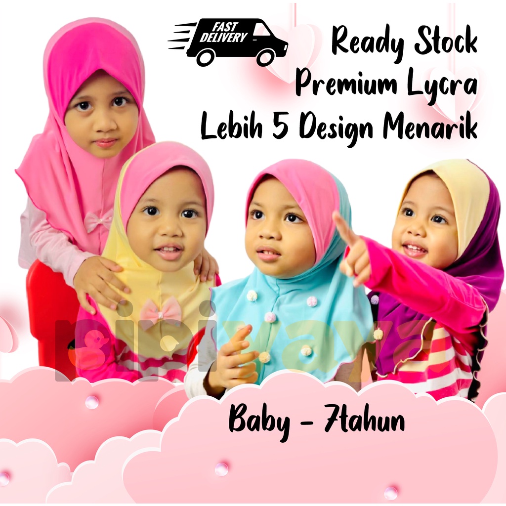 Tudung Budak murah Premium Lycra - 6 pilihan warna (saiz baby - 7tahun)