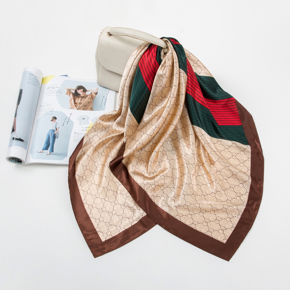 Tudung Printed Bawal Satin Hijab Large Square Scarf Printed Cantik Corak Letter Bawal