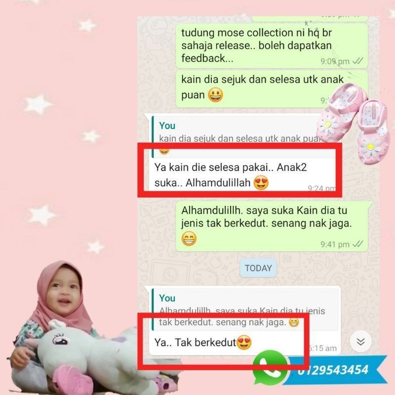 Tudung baby Tudung bayi tudung budak Mose collection tudung dagu biasa mosscrepe tudung kanak-kanak