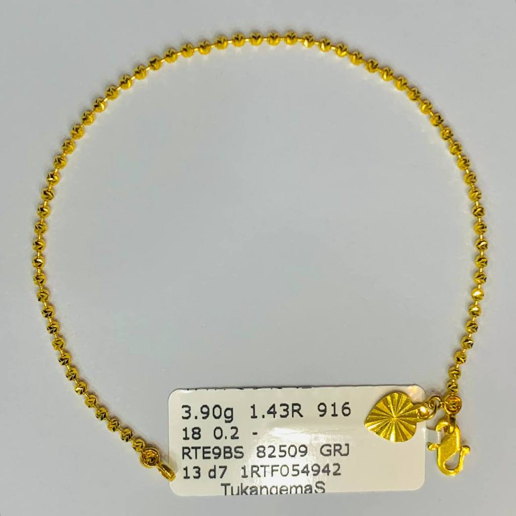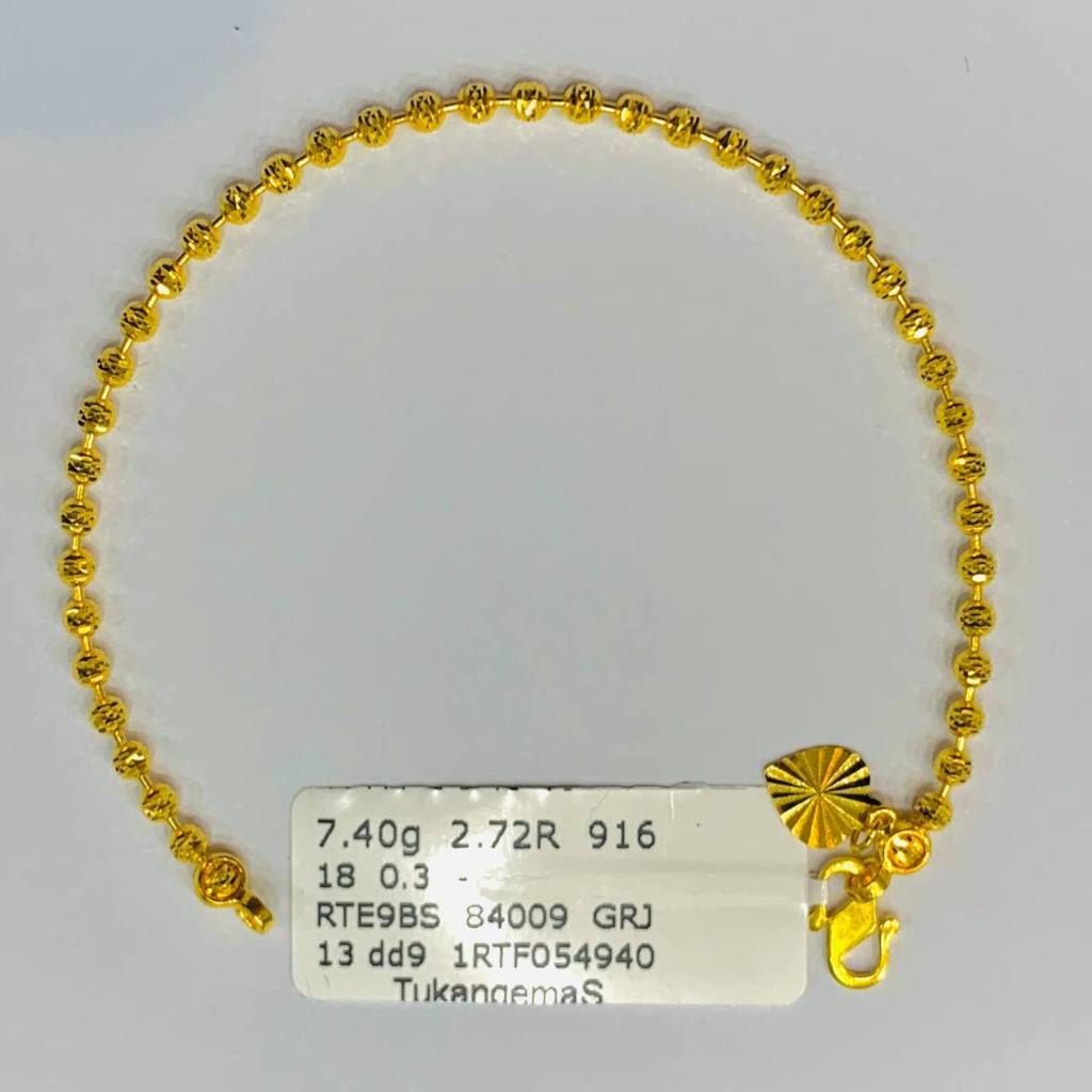 TukangemaS rantai tangan emas 916 biji sawi biji ketumbar 2c GOLD22K fesyen (BS2C)