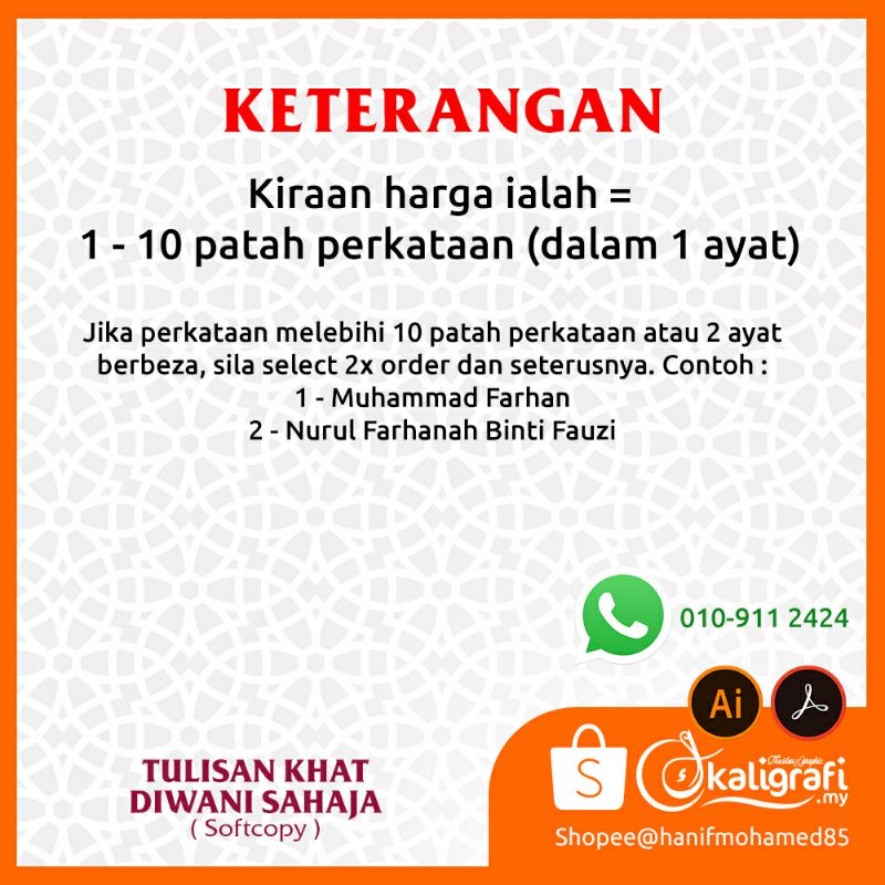 Tulisan Khat DIWANI sahaja (Softcopy)
