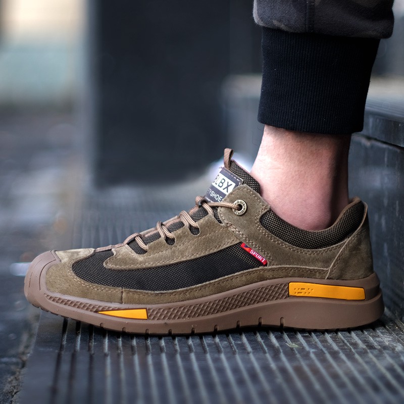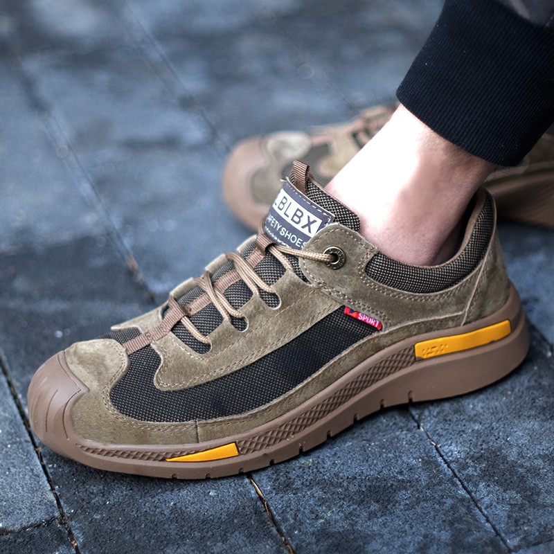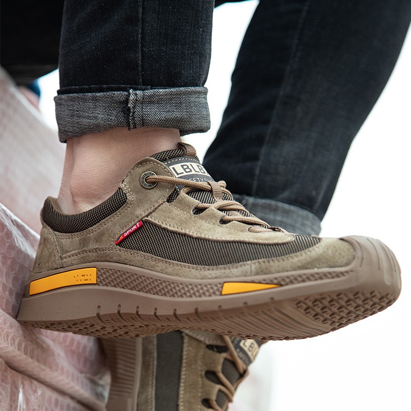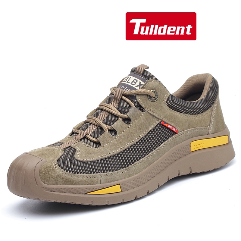 Tulldent Men Safety Shoes Steel Toe Anti-puncture Lightweight Breathable Safety Boots in Brown