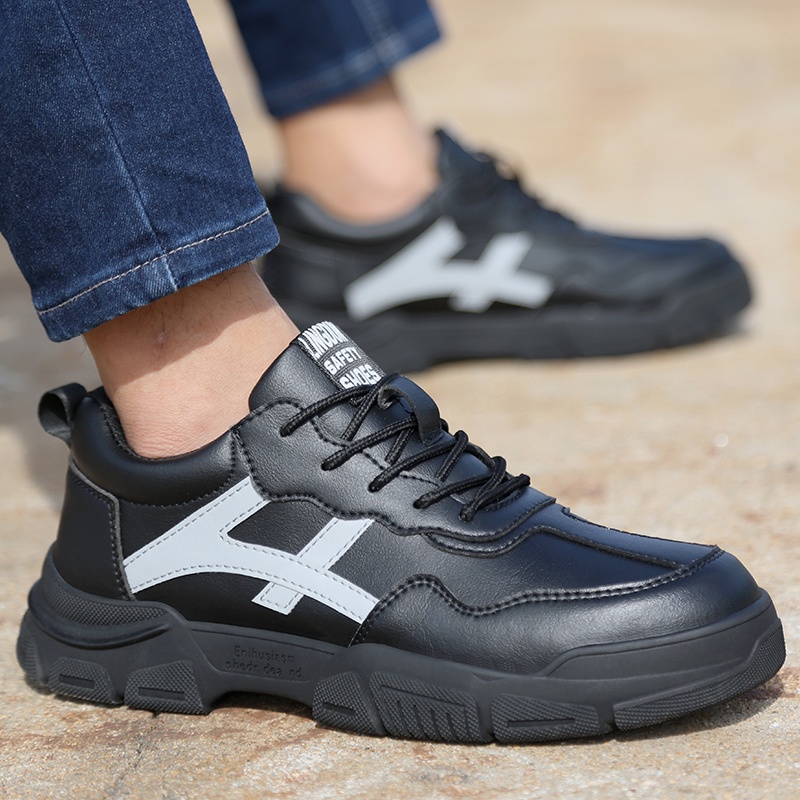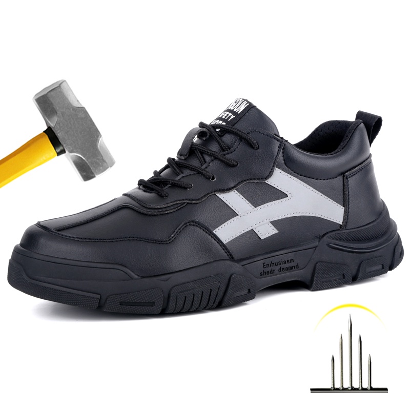 Tulldent Men Safety Shoes Steel Toe Anti-puncture Lightweight Waterproof Safety Boots in Black