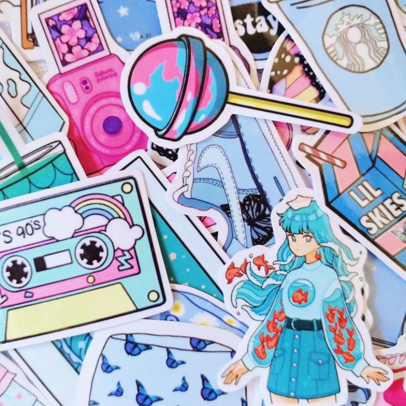 Tumblr aesthetic Stickers/HP Stickers/Laptop Stickers/Blue pink sticker