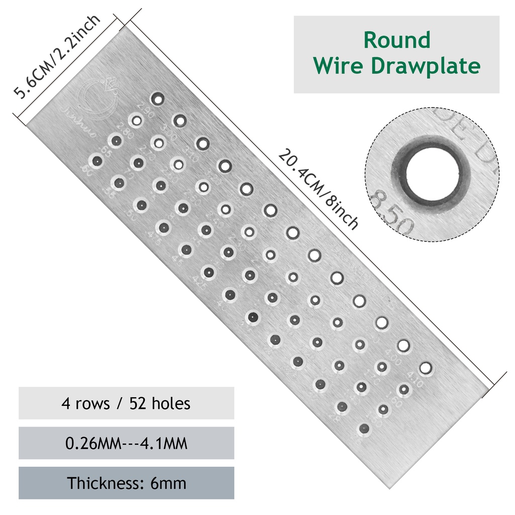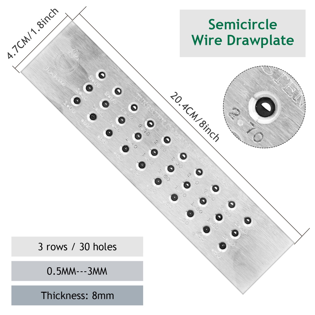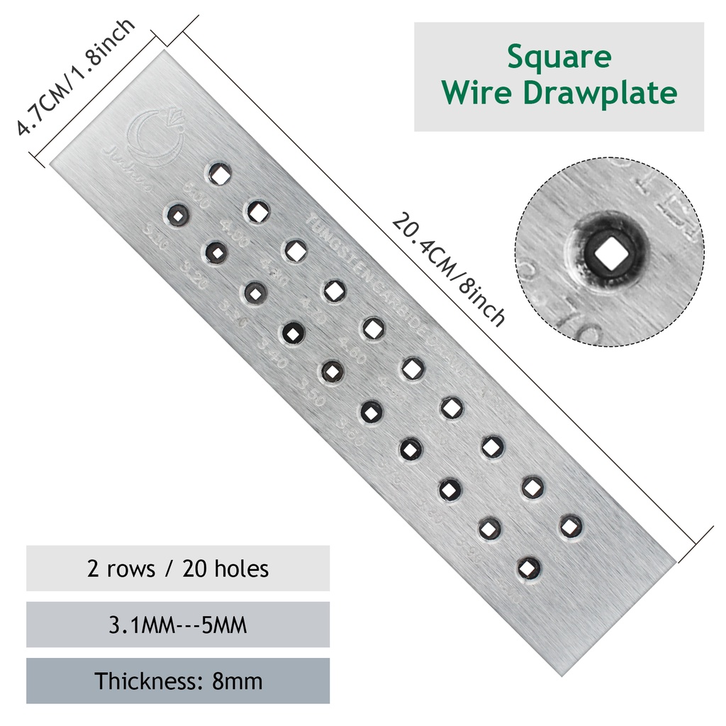 Tungsten Carbide Wire Drawplate Square/Half Round Shape 0.26-9.0mm 20/50 Holes Stainless Steel Drawing Plate for Jewelry Making