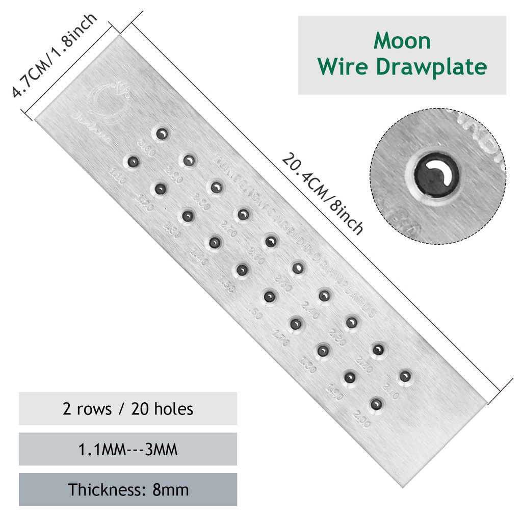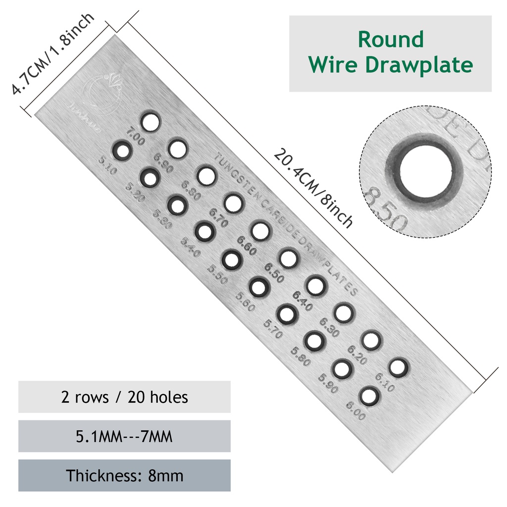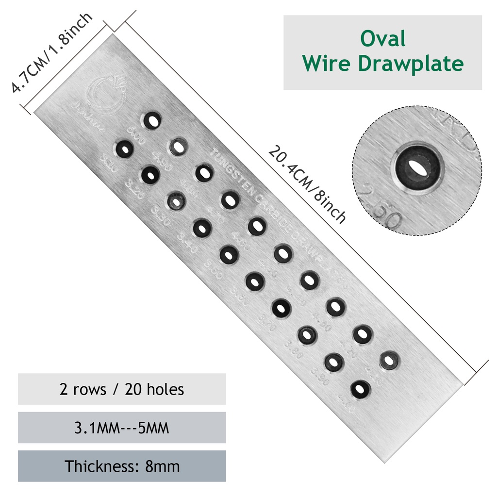 Tungsten Carbide Wire Drawplate Square/Half Round Shape 0.26-9.0mm 20/50 Holes Stainless Steel Drawing Plate for Jewelry Making