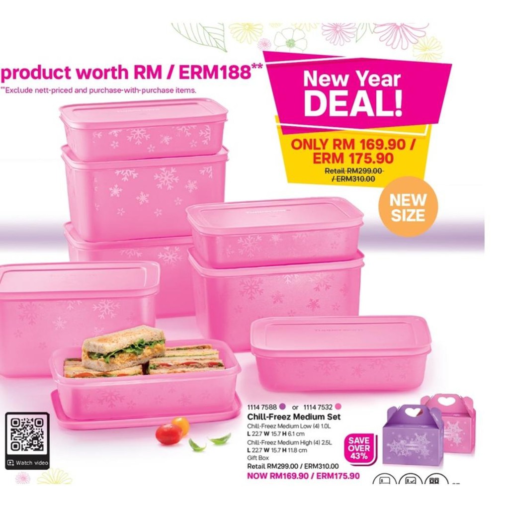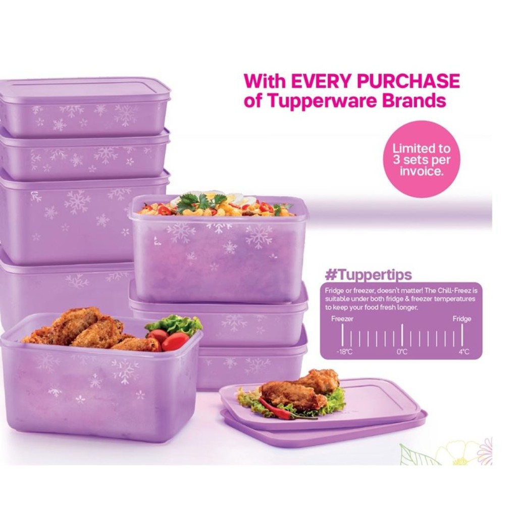 Tupperware ( 8pcs with Giftbox) Chill-Freez Medium Set Pink or Purple Freezer Freezermate Chill N Cool Fresh