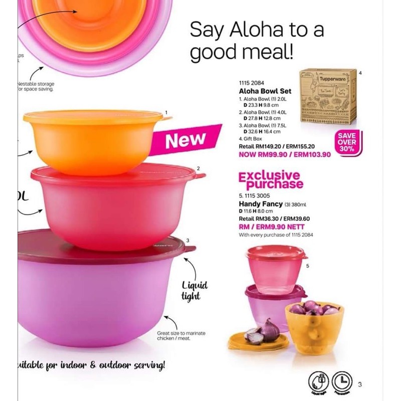 Tupperware Aloha Bowl Set With Handy Fancy (6pcs)