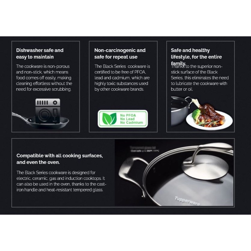 Tupperware Black Series Fry Pan with Glass Lid (28cm)