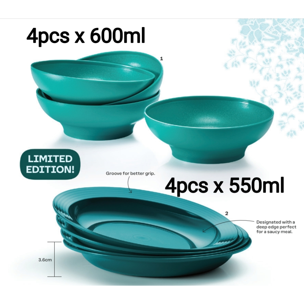 Tupperware Blossom Plate (4pcs) / Gourmet Legacy Bowls 600ml (4pcs)