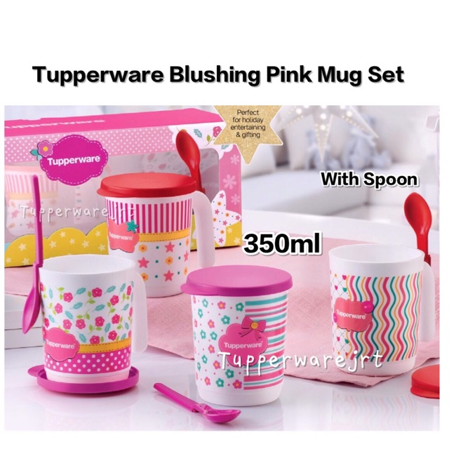 Tupperware Blushing Pink Mug Set 350ml with Spoons