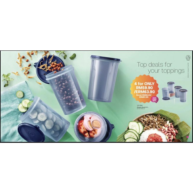 Tupperware Cheerio Quad 1L (4pcs) Dark Blue