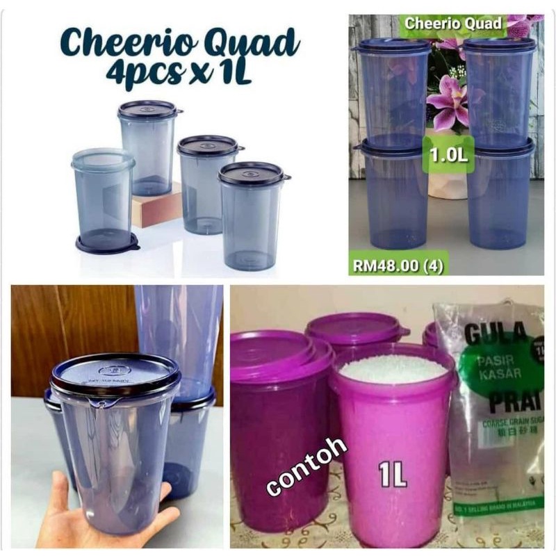 Tupperware Cheerio Quad 1L Food container Bekas tupperware bekal biru ungu merah Tong kecil Tall