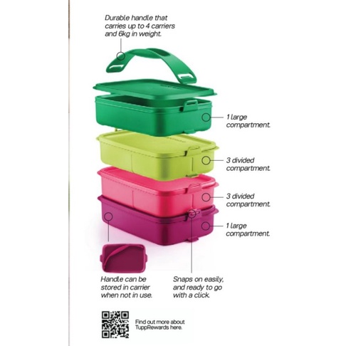 Tupperware Click To Go 900ml x 2pcs (PINK OR GREEN)