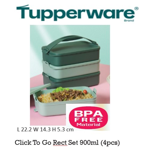Tupperware Click To Go Rectangular Set 900ml (4pcs)