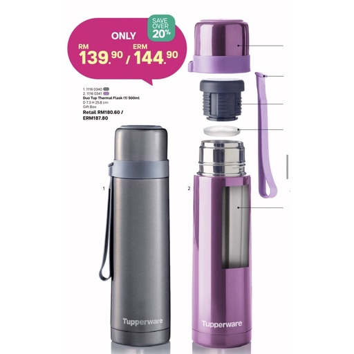 Tupperware Duo Tup Thermal Flask 500ml