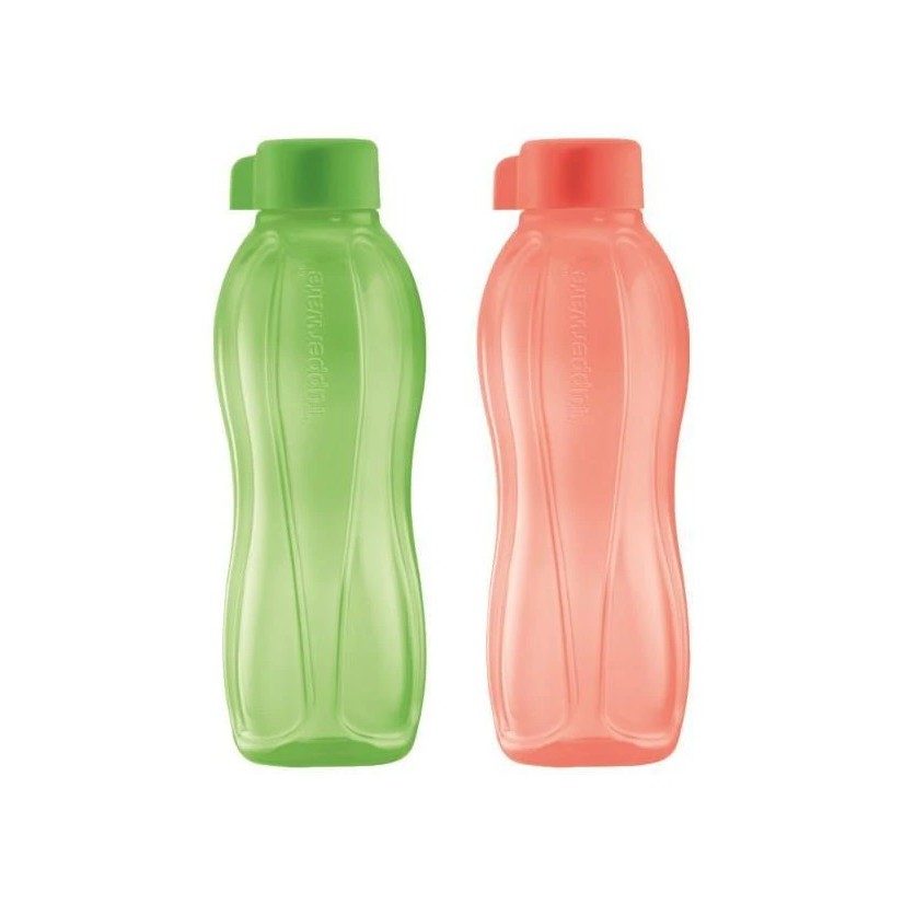Tupperware Eco Bottle 500ml (2) Mango + Aqua / HoneyDew + Salmon / Margarita & Rubine Red/ Peacock + Purple