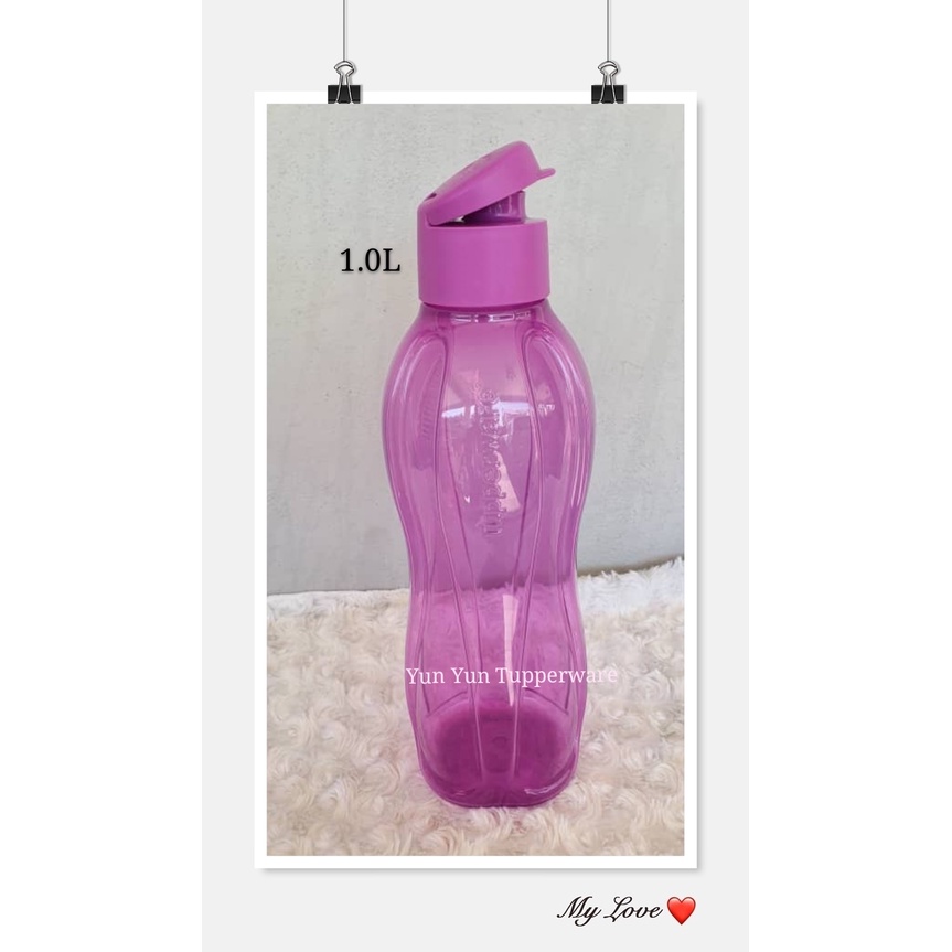 Tupperware Eco Bottle 1L Flip Top (1 PC) Green or Purple - with or without strap