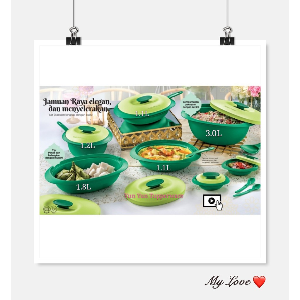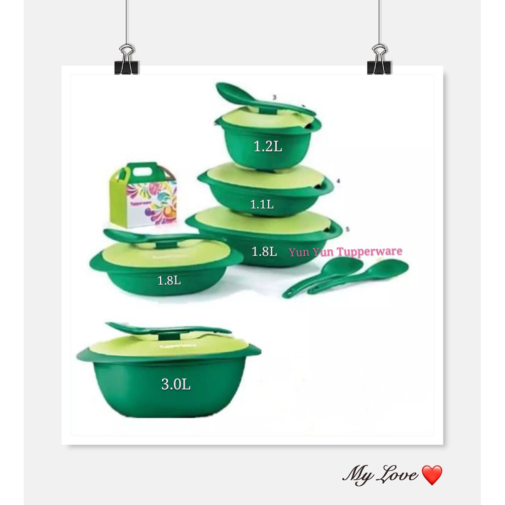 Tupperware Emerald Serving Set (4) with Gift Box + Rice Server (1) 3.0L