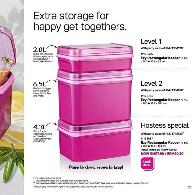 Tupperware Ezy Square Keeper 1.2L/ 2.6L/ 4L/5.5L OR Ezy Rect Keeper 2.6L/ 2.0L/ 4.3L/ 6.5L