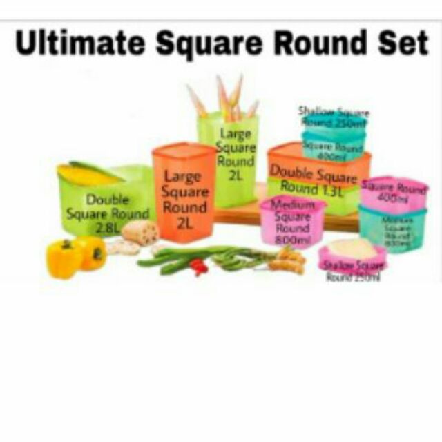Tupperware Food Container Ultimate Square Round Set 11pcs