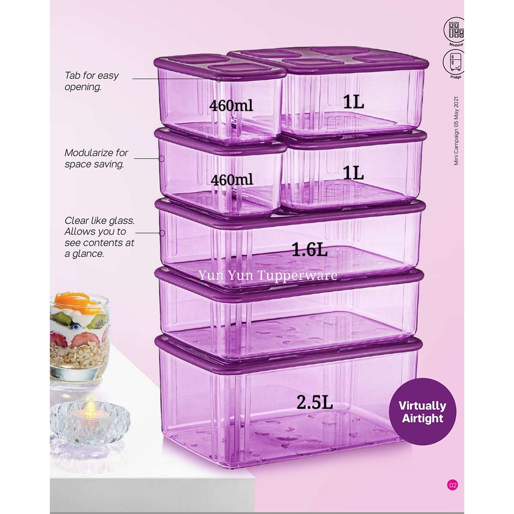 Tupperware Fresh N Clear Set (Purple or Green) - 460ml / 1.0L / 1.6L / 2.5L