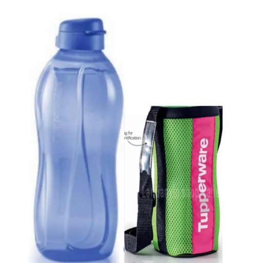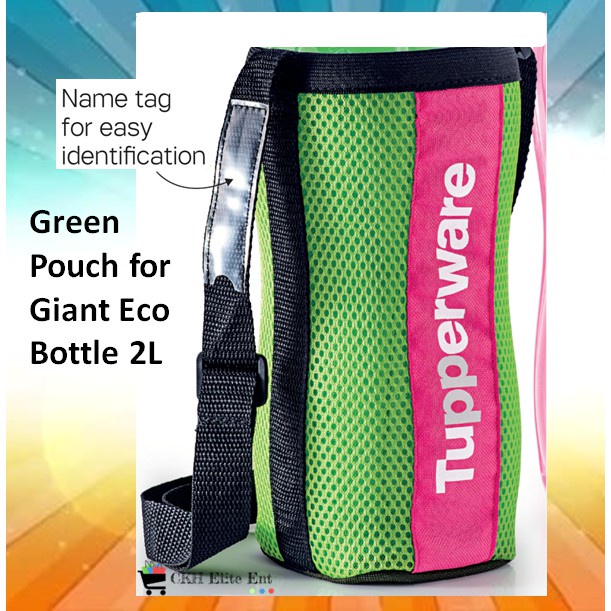 Tupperware Giant Eco Bottle 2L with Pouch - 1 set Blue Bottle + Green Pouch